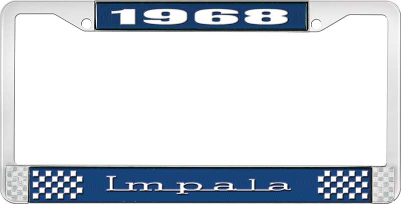 1968 IMPALA BLUE AND CHROME LICENSE PLATE FRAME WITH WHITE