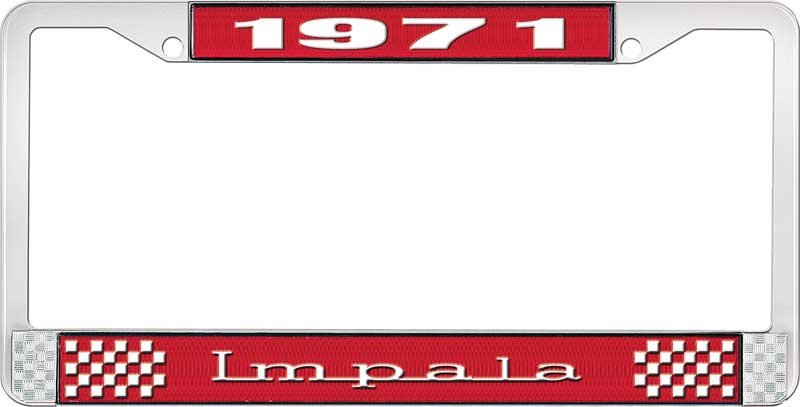 1971 IMPALA RED AND CHROME LICENSE PLATE FRAME WITH WHITE LE