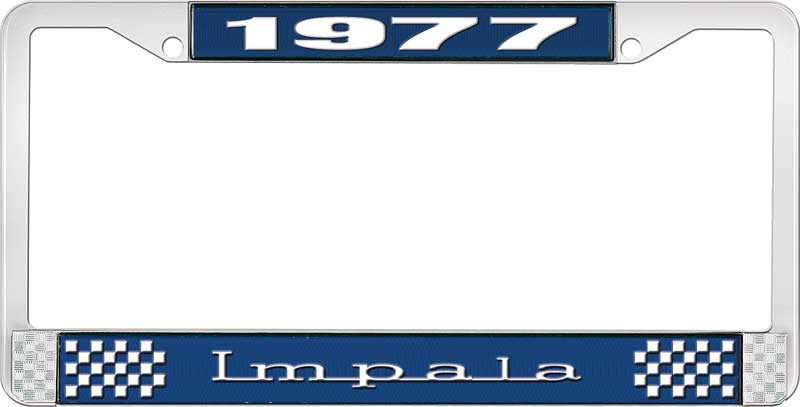 1977 IMPALA BLUE AND CHROME LICENSE PLATE FRAME WITH WHITE