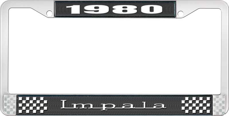1980 IMPALA BLACK AND CHROME LICENSE PLATE FRAME WITH WHITE