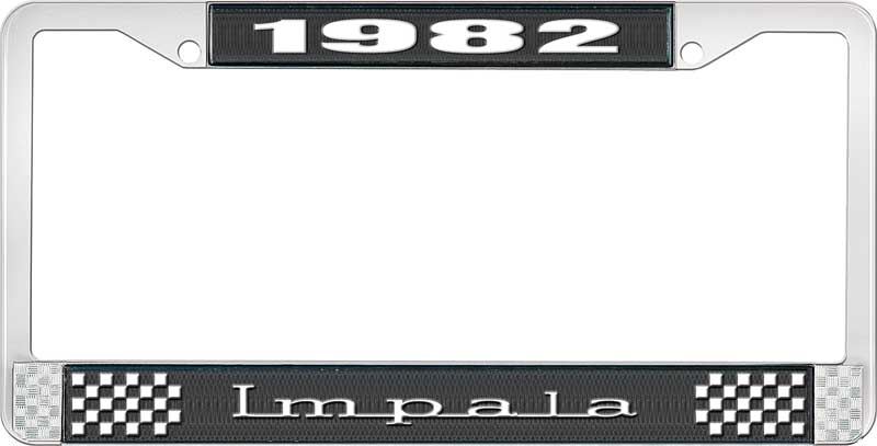 1982 IMPALA BLACK AND CHROME LICENSE PLATE FRAME WITH WHITE