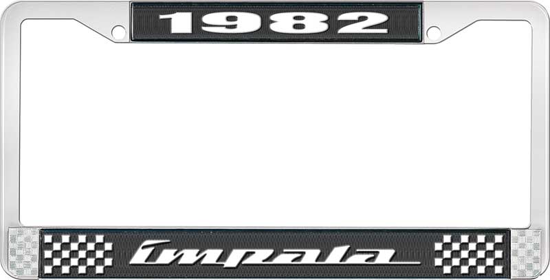 1982 IMPALA BLACK AND CHROME LICENSE PLATE FRAME WITH WHITE