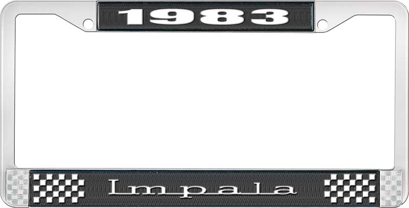 1983 IMPALA BLACK AND CHROME LICENSE PLATE FRAME WITH WHITE