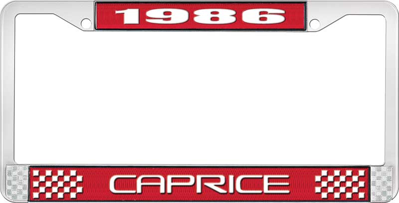 1986 CAPRICE RED AND CHROME LICENSE PLATE FRAME WITH WHITE L